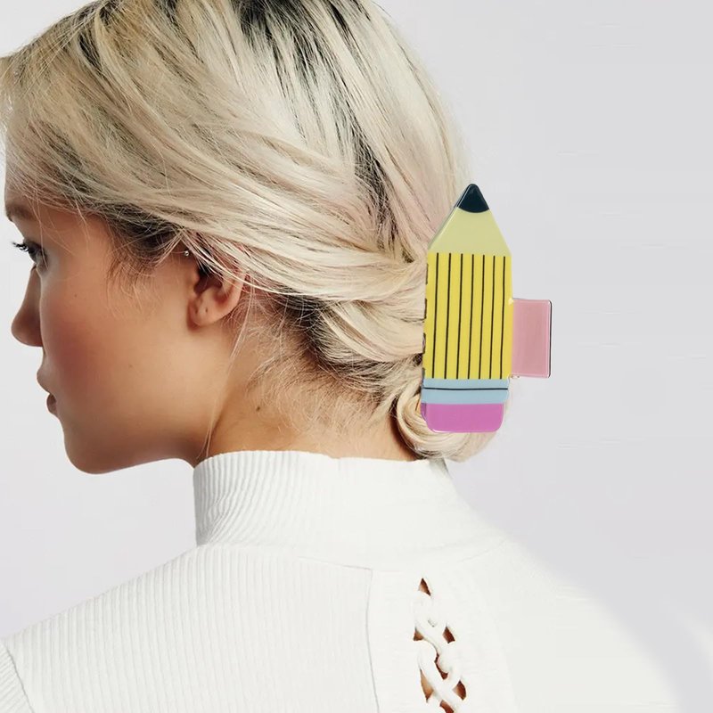 - Cute Pattern:our cute pencil hair claw clips for women and girls are made of durable and lightweight premium acrylic material with fun pattern on the surface. And it's easy to wear. The spring is very sturdy.Whether your hair is dry or wet, it is enough to help keep it in place! Teeth are long enough to bite well.