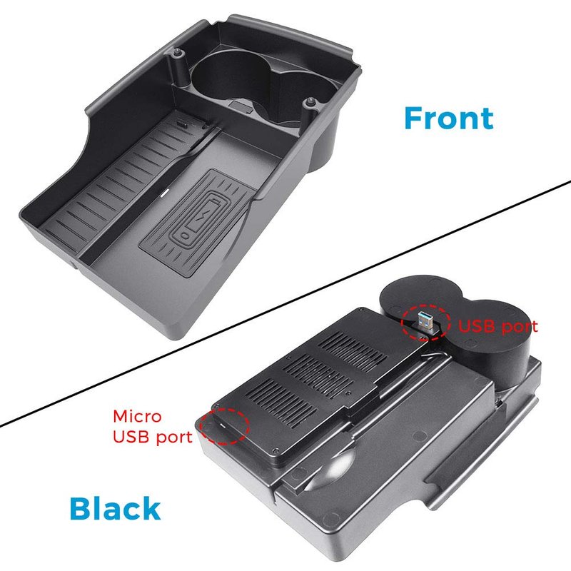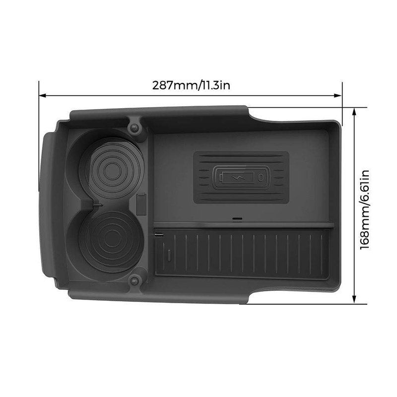 CreekT T-Box wireless phone charger for Model S and for Model X 2016 2017 2018 2019. It's Not Only a Car Wireless Phone Charger, but also a storage box, cup holders and for music play.