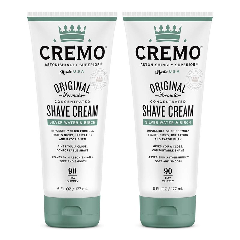 Cremo Barber Grade Silver Water & Birch Shave Cream, Astonishingly Superior Ultra-Slick Shaving Cream Fights Nicks, Cuts And Razor Burn, 6 Fl Oz (Pack of 2)