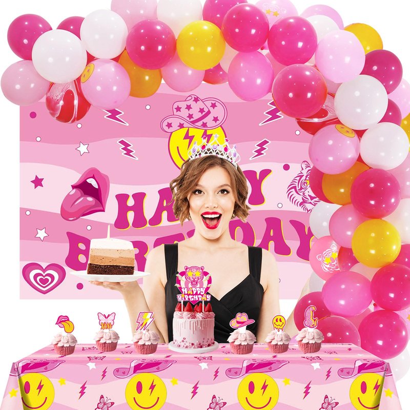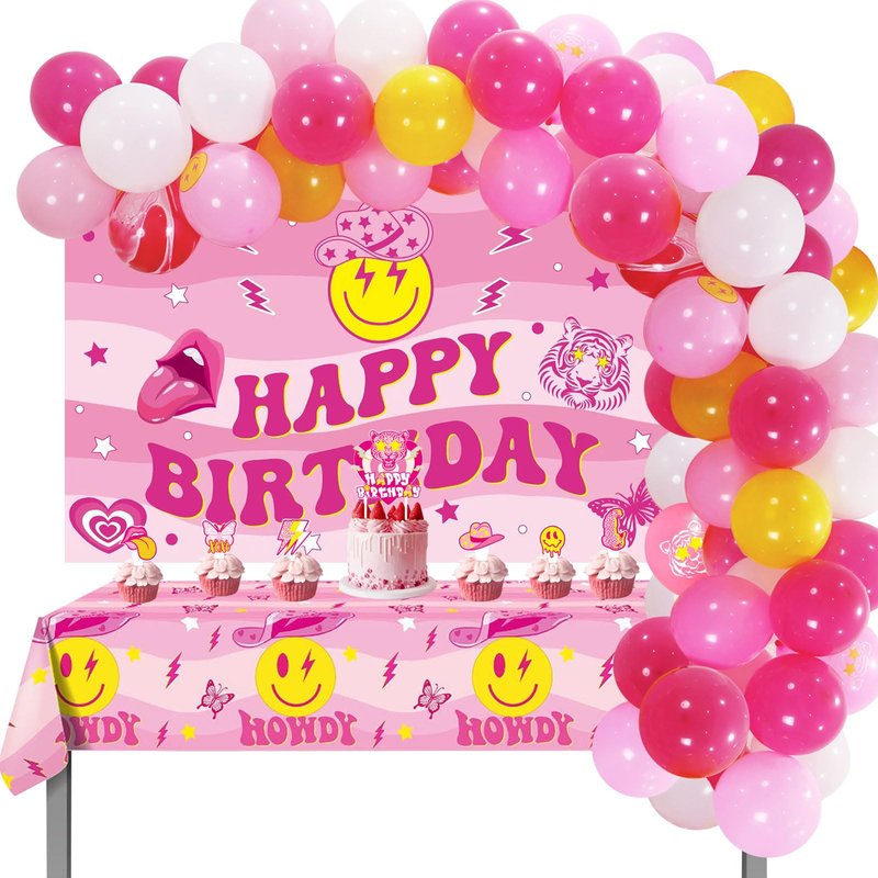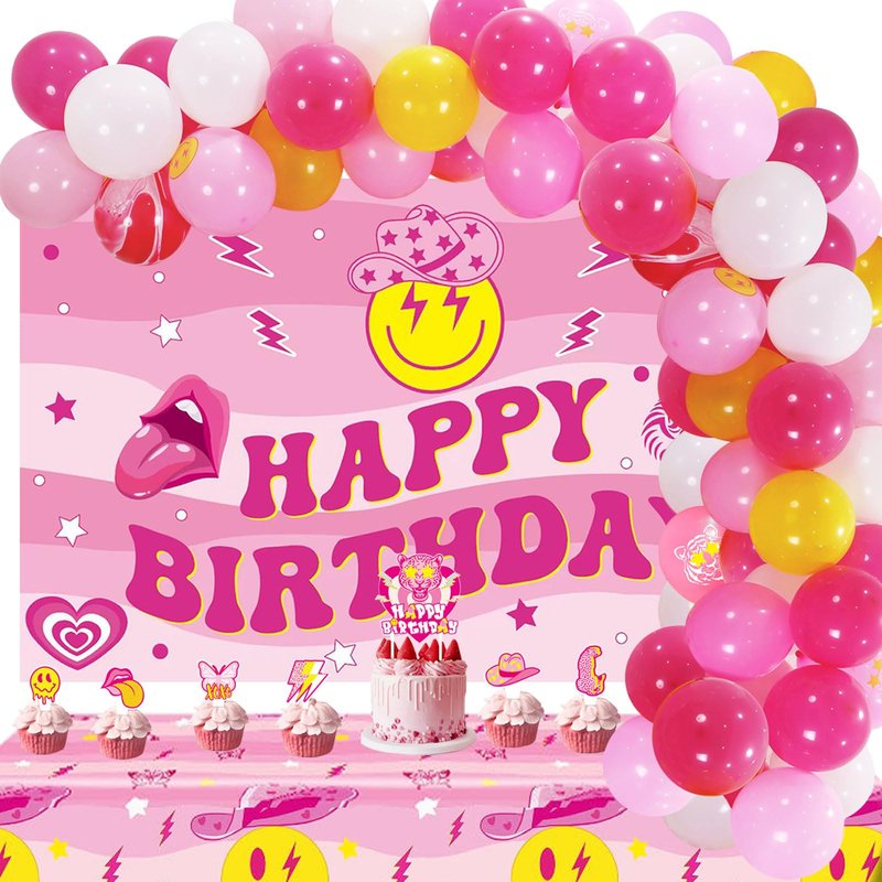 - 【Exquisite Design】- Unlike other birthday party decorations, this birthday banner is mainly in hot pink, with preppy theme patterns such as smiling face, tiger head, lip, love heart, butterfly and the text "HAPPY BIRTHDAY" printed on them. Matched with tablecloth and balloons arch, which will create a cheerful atmosphere for your party!
