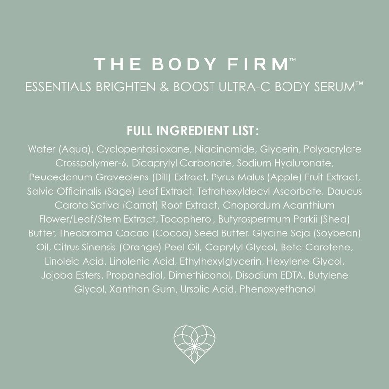 - BRIGHTEN & BOOST ULTRA-C BODY SERUM: Like a topical supplement for the skin, our Brighten & Boost Ultra-C Body Serum combines 13 vitamins & superfoods to help brighten and hydrate dull, depleted, rough skin, while optimizing natural collagen levels.