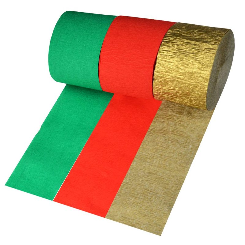 - NICE COLOR COMBINATION: The package contains :red, gold, green, ideal for decorating Christmas themed party, adding holiday atmosphere for your party. Compared with other crepe paper streamers in multicolor, our item can save your money and reduce storage loss while meets your needs.