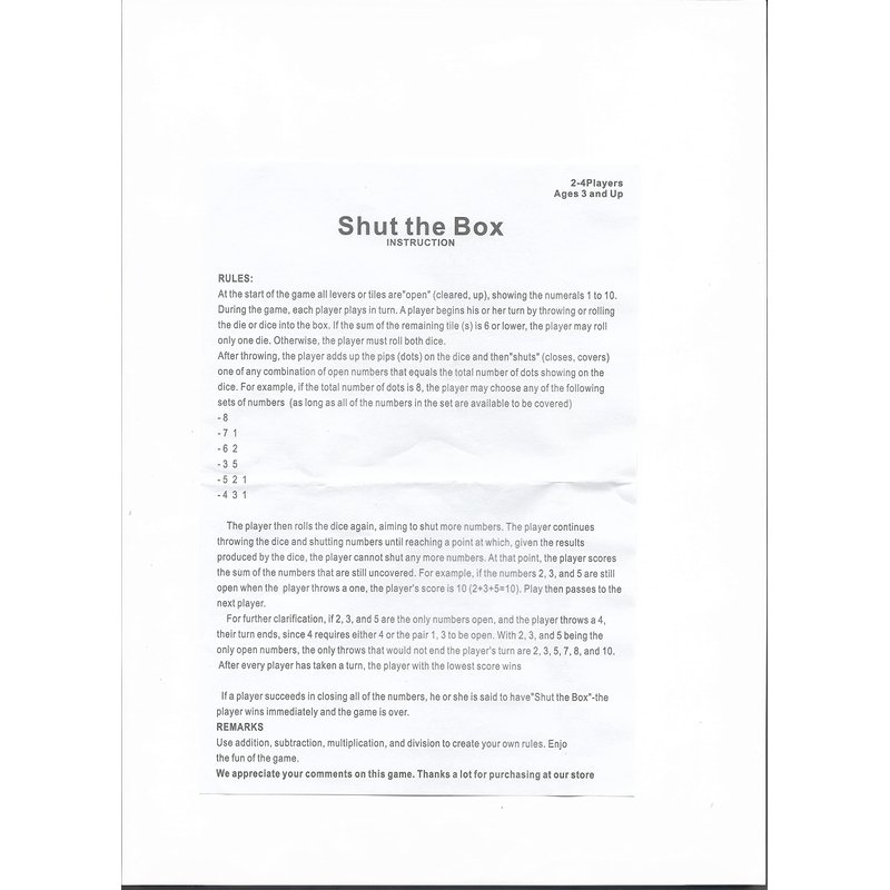 - CLASSIC SHUT BOX GAME - This wooden shut the box game will provide hours of fun wherever you go. It’s a perfect choice for Christmas Gift, Thanksgiving Day Gift, Birthday Gift, Children's Day Gift, or other special days for kids and teens