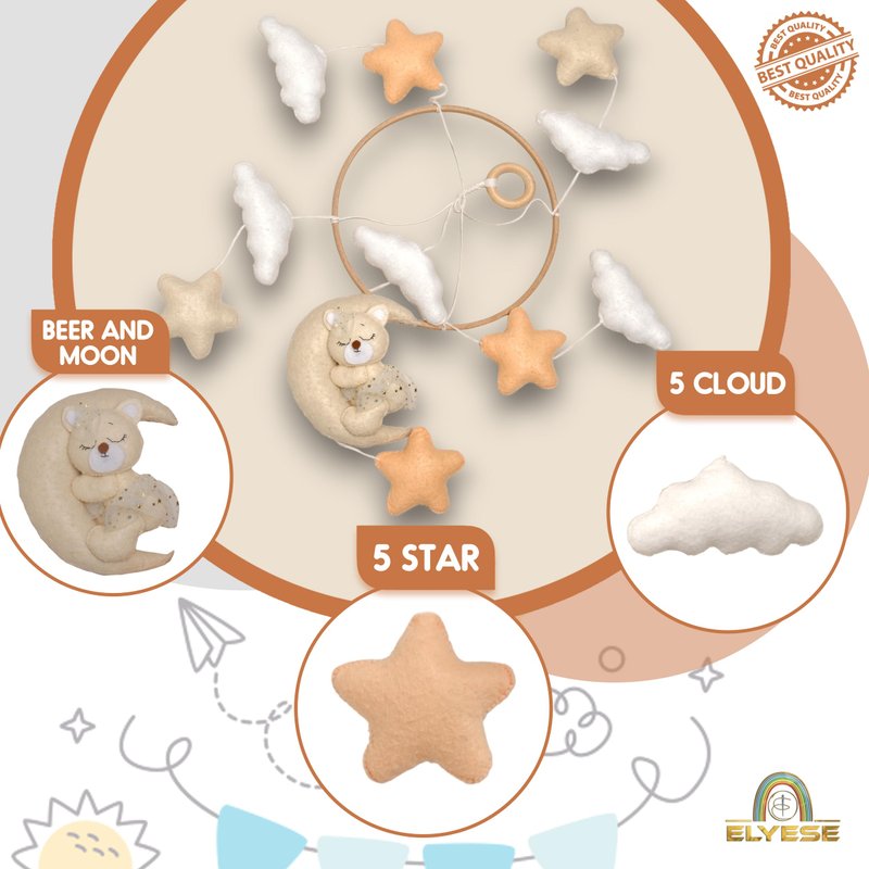 - Crib Mobile for Girls, Sleeping Princess Bear Baby Mobile for Crib, Handmade Felt Crib Mobile, Baby Crib Mobile with Cloud and Stars, Nursery Baby Mobile for Bassinet