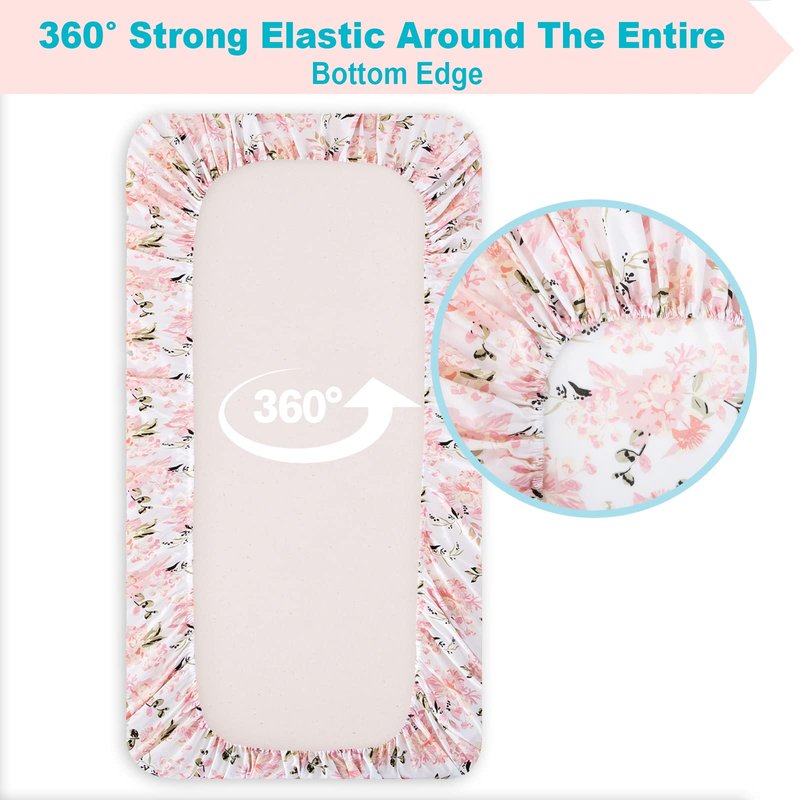 - 🌷PREMIUM QUALITY - The floral crib sheets are made of silky soft microfiber, which is soft, comfortable, lightweight, breathable and durable fabric. 360º elastic prevents sheets from creeping up on the mattress, so you and your baby can rest easy.