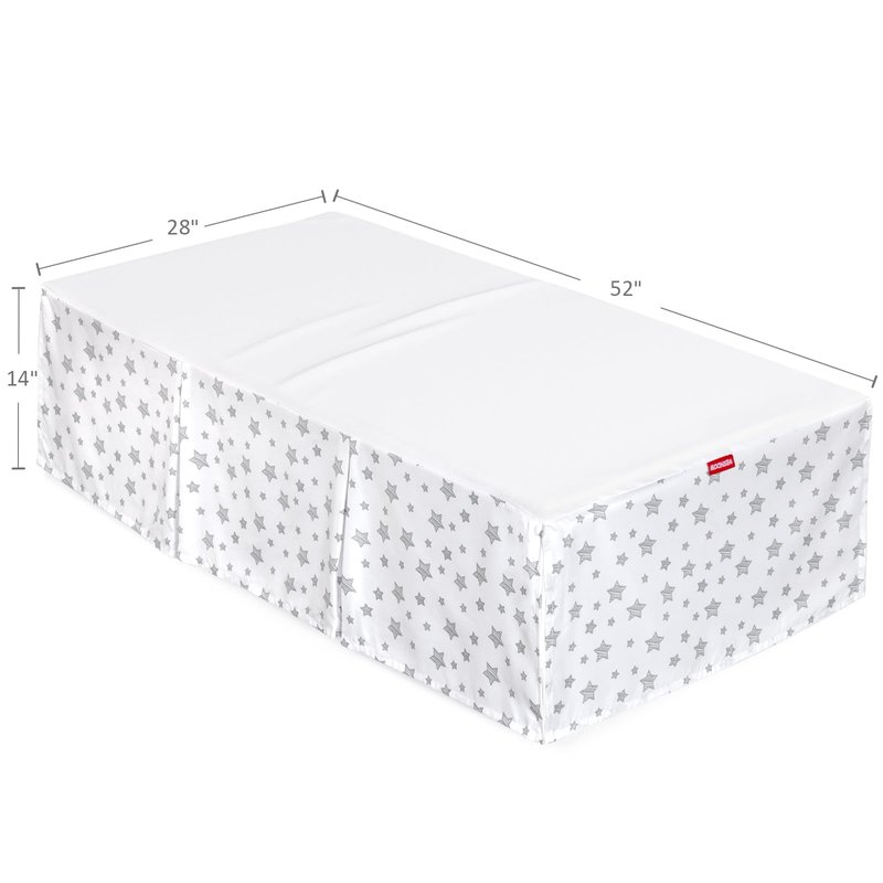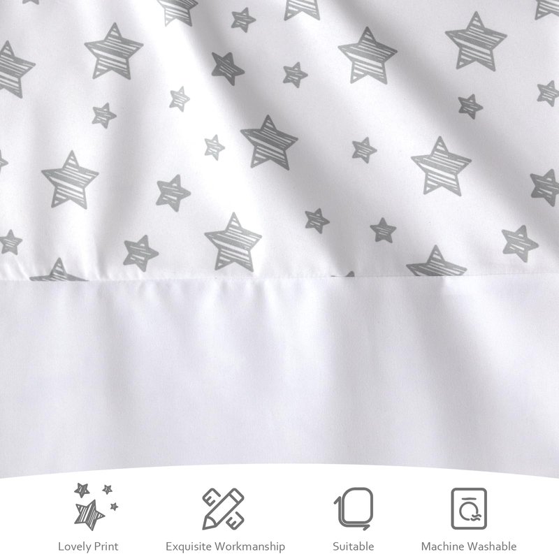 - Classic Pleated Design and Lovely Print: Pleated bed skirt is featured with inverted pleats for a soft tailored finished looking. And our crib skirt print with lovely star which is coordinates with Moonsea bedding styles and adds a finished look to baby's crib.