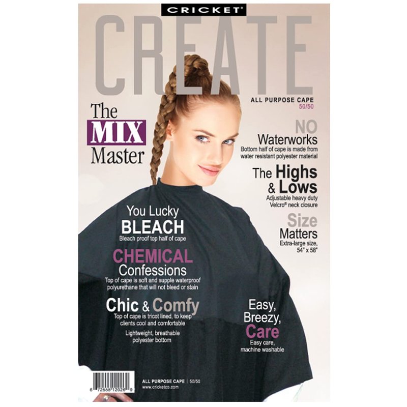 Cricket 50/50 All Purpose Cape for Professional Salon Barbershop Hairdresser, Waterproof Bleach Proof, Haircut Hair Color Gown, Black