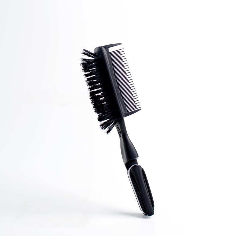 - CUSTOM HAIR TIE HANDLE – This styling brush comb combo is designed with a custom hair tie handle and comes equipped with three elastic hair ties. A hair brush that really does it all.