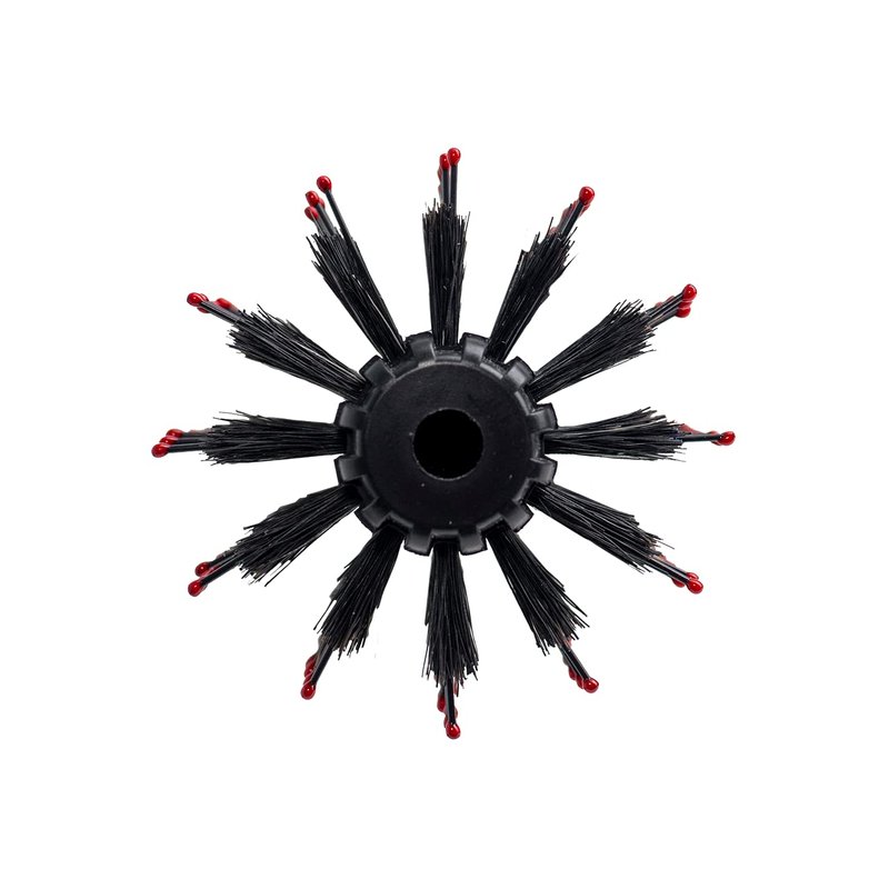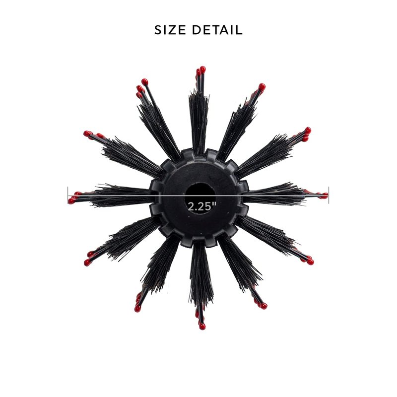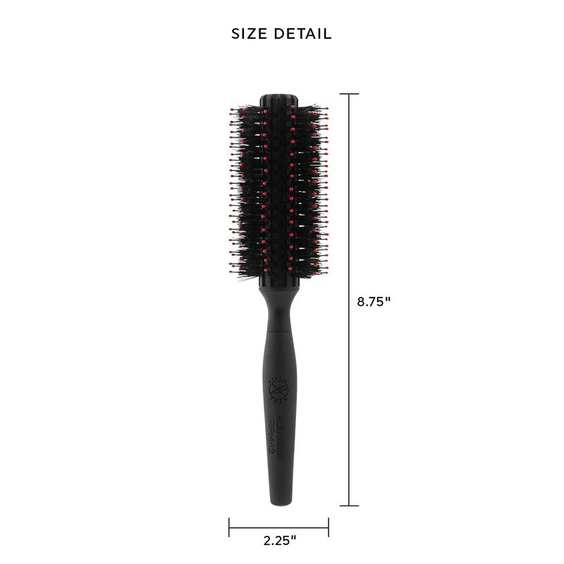 - NATURAL BOAR & NYLON BRISTLES - The natural boar bristles on this 12 row round brush add major shine to the hair by naturally distributing the hair’s oils throughout the hair. Combined with extended, gentle, fine non-snag, and anti-static nylon bristles.