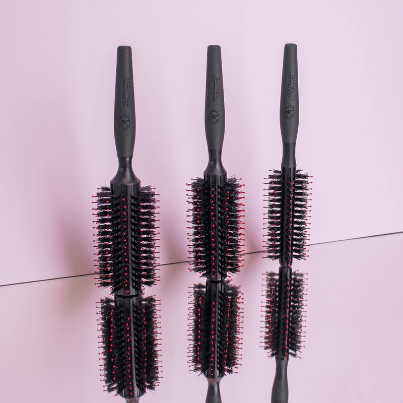 Round brush that is perfect for finishing touches and facial hair grooming. Best-selling brush collection that is coveted by hairstylists and barbers as "the" brush for a flawless pompadour and facial grooming. This Collection is a game changer for these artists!