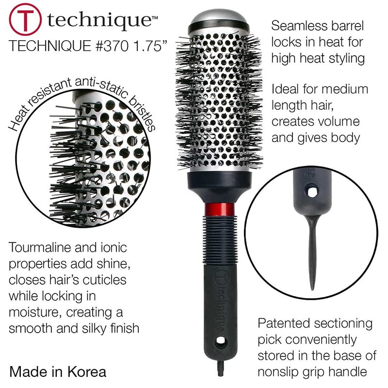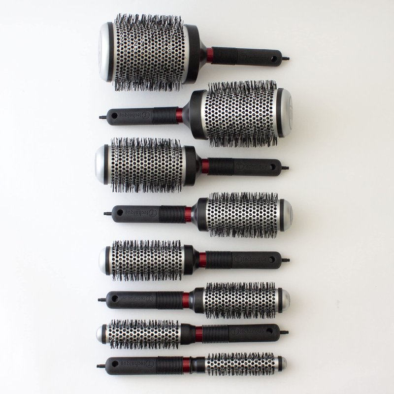 The Korean-made Technique Thermal Hair Brush Collection for styling hair will be your go-to brush for creating anything from classic, Hollywood va-va-voom body do to the ultra-sleek chic look. Featuring a seamless barrel with heat-resistant, anti-static bristles infused with Tourmaline and Ionic properties to assist with reducing unwanted static and adding shine to hair. Great for styling all hair types, this thermal brush allows for flawless styling and promises professional-looking blowouts.