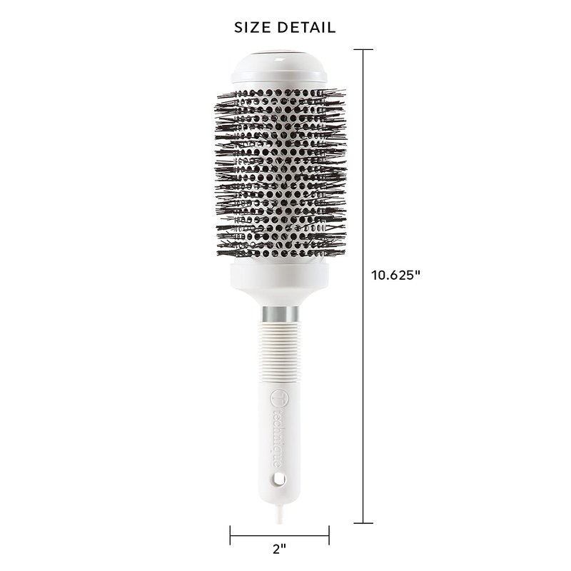 - SILICONE AND CERAMIC INFUSED BARREL – This thermal barrel brush features a seamless barrel that has been infused with Silicone and Ceramic properties which produce soft, radiant, silky hair full of body.
