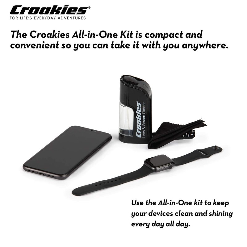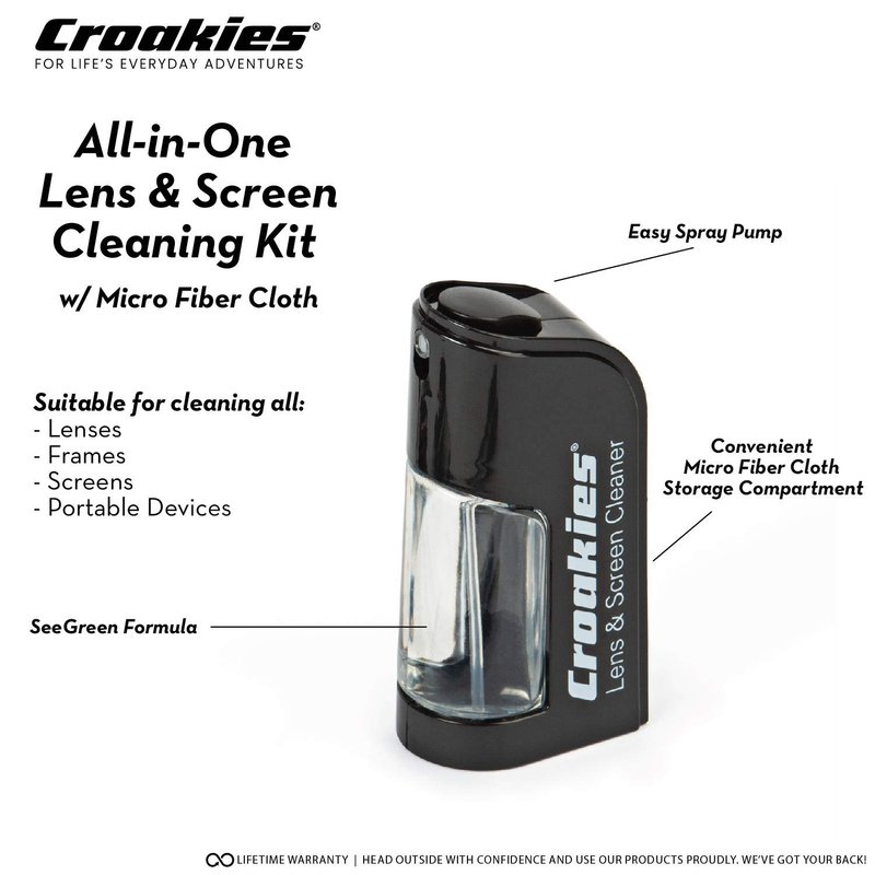 Croakies screen cleaning kit cleans, shields, and protects eyewear. It comes with a screen cleaner spray and cleaning cloth to cut through dust, stain, and grease while keeping your lenses and screens crystal clear. The eyeglasses kit is safe for anti-reflective and special coated lenses. The Croakies brand has earned a reputation over the past 40+ years of delivering best-in-class products, whether saving your shades while adventuring in the outdoors, complementing your daily style with artistic belts made from recycled plastic bottles, or keeping your favorite Rx frames securely around your neck. We continue our commitment to using the finest materials and workmanship and with a lifetime warranty, Croakies has you covered, leaving you to tackle your everyday adventures with confidence.