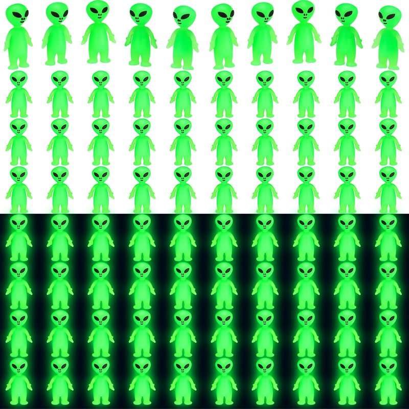 - Glow in the Dark Alien Figurines: includes 25 pcs of small alien figures that glow in the dark; These alien party favors are ideal for Halloween party favors, themed parties, classroom rewards or gift bag fillers; Also, they are ideal for hours of creativeness and imaginative play for your boys and girls; With these mini alien figures, the fun will continue for a long time