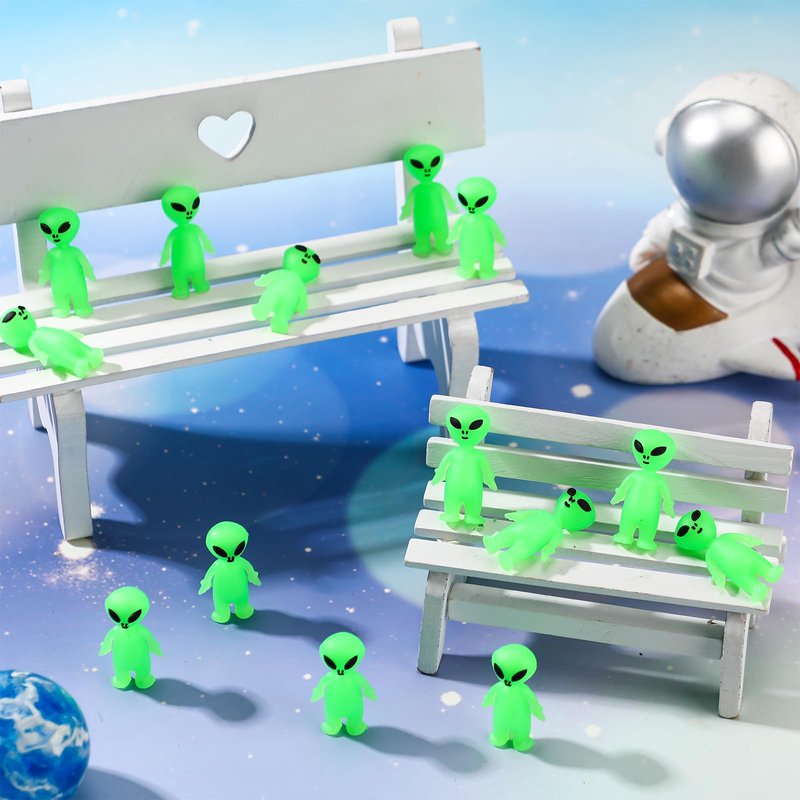 - Glow in the Dark Feature: these mini alien figurines feature a charming fluorescent green color that catches your eyes; They not only mimic the look of aliens, but the color also enhances the glow in the dark feature; They're also suitable for hiding games and prank toys which adds a fun element to any setting, such as home, office, school and so on