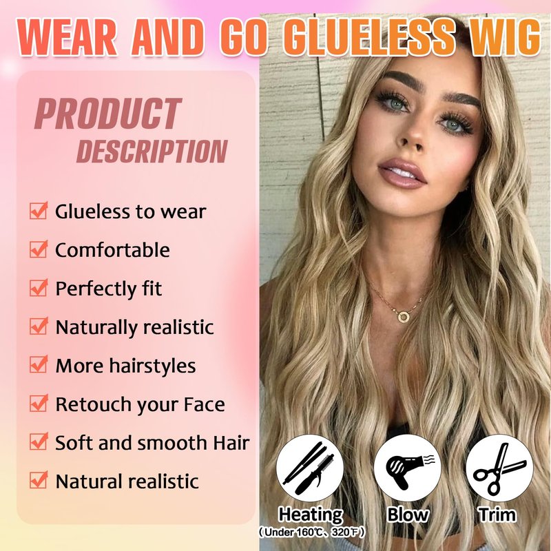 - ❤️【Easy Wear and Go】The Long Wavy Wigs Use New Upgraded Full Elastic 3D Dome Cap With Removable Adjustable Elastic Band, Very Easy and Convenient to Adjust,Can be Weared within 5 Seconds. Our Glueless Wig Fits Most People's Head Size.