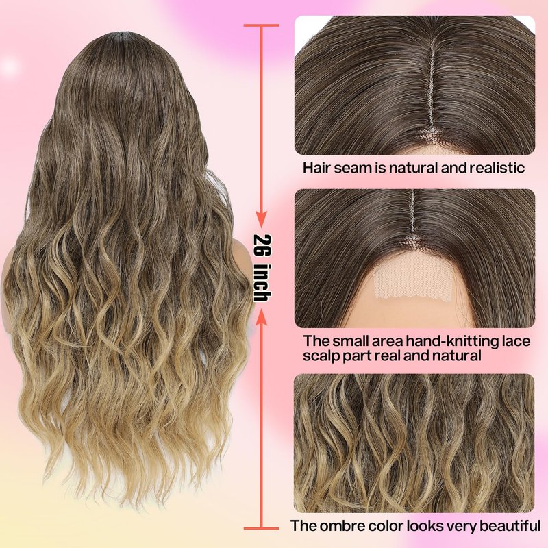 CroLiya Blonde Wig for Women 26 Inch Middle Part Lace Blonde Ombre Wig Long Curly Wig Upgraded Protein Fiber Blonde Wigs for Daily/Party Use Glueless Wig Synthetic Hair (Ombre Blonde)