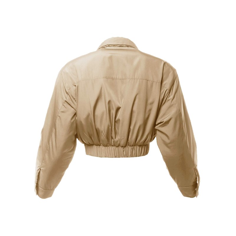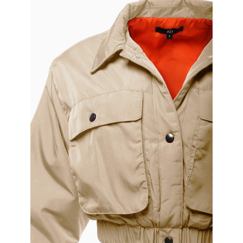 Cropped Front Two Pocket Snap Quilted Padding Bomber Jacket Khaki M
