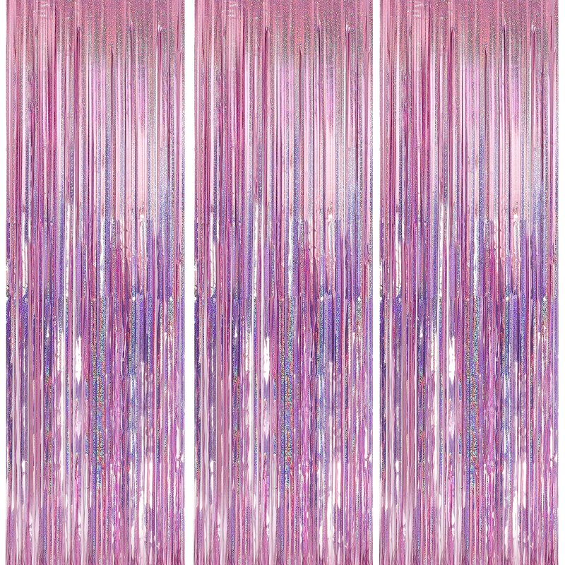 Crosize 3 Pack 3.3 x 9.9 ft Pink Foil Fringe Backdrop Curtain, Streamer Backdrop Curtains, Streamers Birthday Party Decorations, Tinsel Curtain for Parties, Galentines Decor, Preppy, Photo Booth