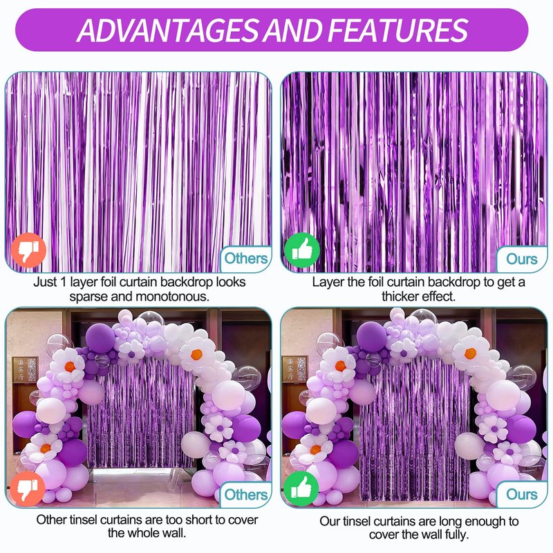- Durable & Reusable - These party backdrop are made of durable tinsel with a shiny surface, which will keep the shimmer effect all the time, so they can be reused at another time, and light up your parties every time.
