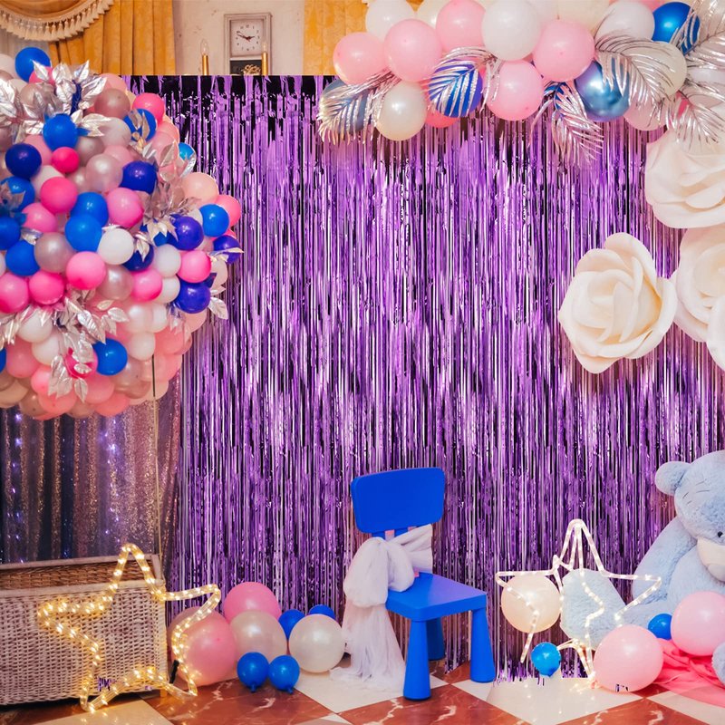 purple foil fringe curtain backdrop for parties