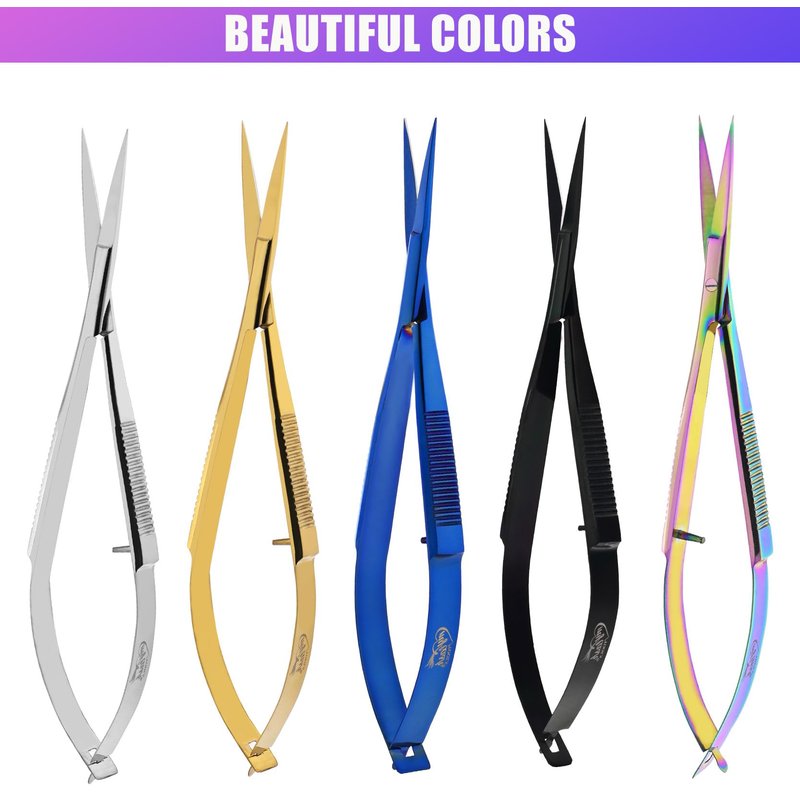 Cross Edge Corporation Spring Scissors 5 Inch straight Stainless Steel Precision Eyebrow & Eyelash Shaping & Trimming Scissor, Snips Squeeze Scissors, Embroidery, Knitting Micro Tip Craft Scissors