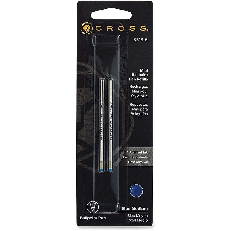 Cross Mini Ballpoint Pen Refill, Medium Point, Blue, 2-Pack (8518-6)
