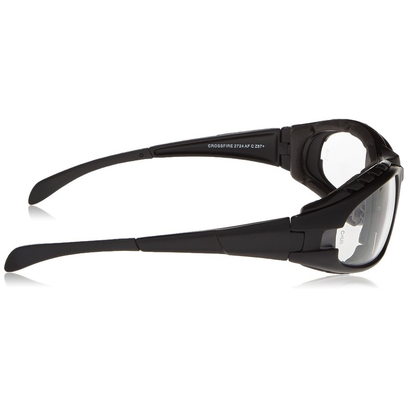 Crossfire 2724AF Diamondback Safety Glass Clear Anit-Fog Lens - Foam Lined Matte Black Frame