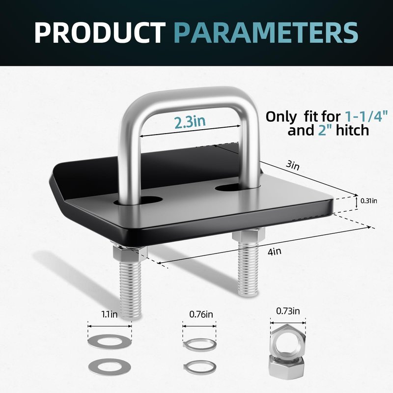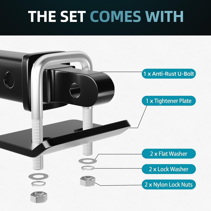 - 🔩 【Crosship Hitch Tightener】We used heavy duty 304 stainless steel U-bolt φ0.4 inch U-bolts with 2 standard flat washers, 2 spring lock washers, 2 Nuts. We use sturdy boxes for packaging to ensure that there is no collision or damage(If there is any damage, please contact us promptly for replacement).