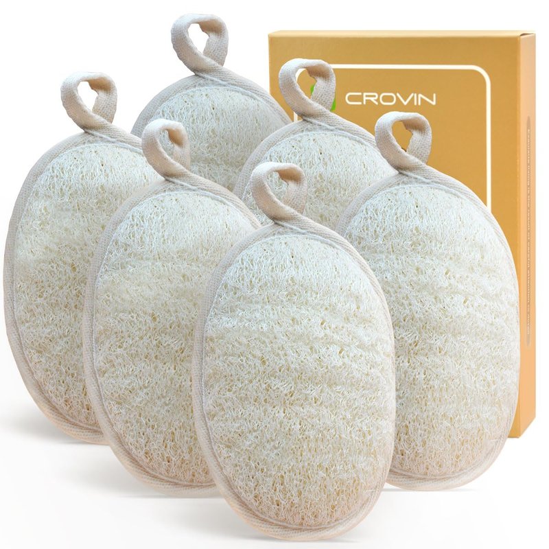 CROVIN Natural Loofah Exfoliating Body Scrubber, Made with Natural Shower Loofah Sponge for Men and Women’s SPA - 6 Count Gifts Exfoliating Loofah Sponge Package,Perfect for Bath Shower