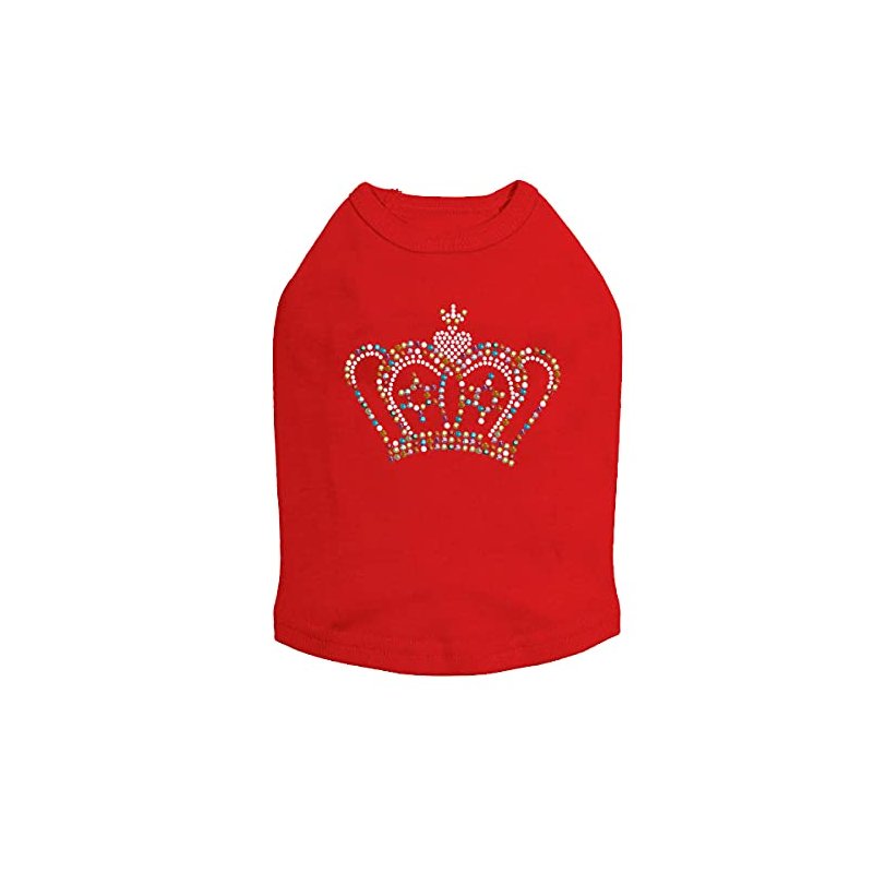 Crown #11 - Multicolor - Dog Tank - Dog Tank for small and large dogs. 4" X 2.5" design with multicolored rhinestuds.