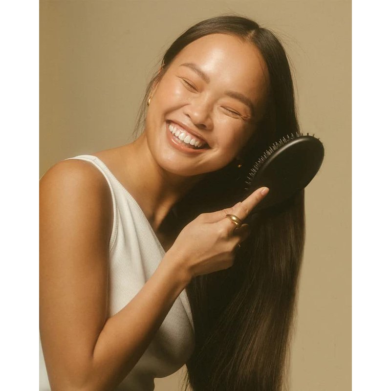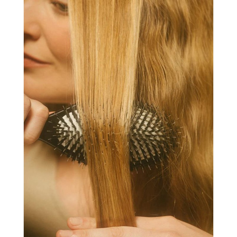 The Details: It all starts in Italy, where The Brush No. 001 is made by hand. Then, thanks to its combination of boar and nylon bristles and an ergonomic, protective cushion, it ends with a healthier head of hair: the shorter boar bristles work to distribute natural healthy oils throughout your strands, preventing them from becoming dry and brittle and protecting your scalp from oxidative damage. The longer nylon bristles gently stimulate your scalp to increase blood flow. Follicles stay healthy, volume is added at your crown and hair grows longer, faster. We recommend The Brush No. 001 for medium to thick, straight, or wavy hair. Please note The Brush No. 001 has a small breathing hole on the pneumatic pad to better distribute and absorb pressure across your entire scalp. The Brush No. 001: 8.75in x 2.5in x 1.5in How to Use: A good, thorough brush before you wash loosens build-up from your scalp and creates the ideal circumstances for a truly clean post-shampoo. Add this to your ritual with the Brush No. 001. For every day, use the Brush in the morning to detangle, in the afternoon to refresh, and before bed to evenly distribute natural oils and wake up with softer, shinier hair. To keep your new tool at its best, avoid getting it wet. Use The Brush Cleaner weekly to remove hair and maintain a clean brush. And because wet hair is hair at its most vulnerable, we always recommend gently using a comb to detangle wet hair, and saving The Brush for when your hair is nice and dry.