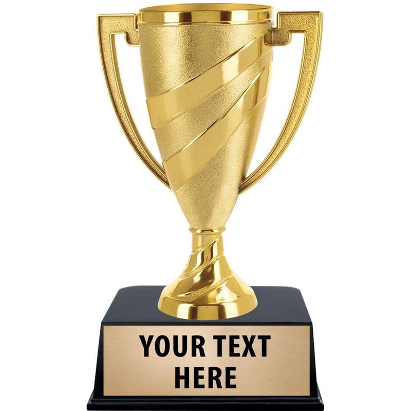 - CUSTOM GOLD CUP TROPHIES: Customize Now With Your Own Text Engraving! Our Design Experts Personalize Each Award Trophy With Care. Includes Up To 4 Lines Of Engraving.