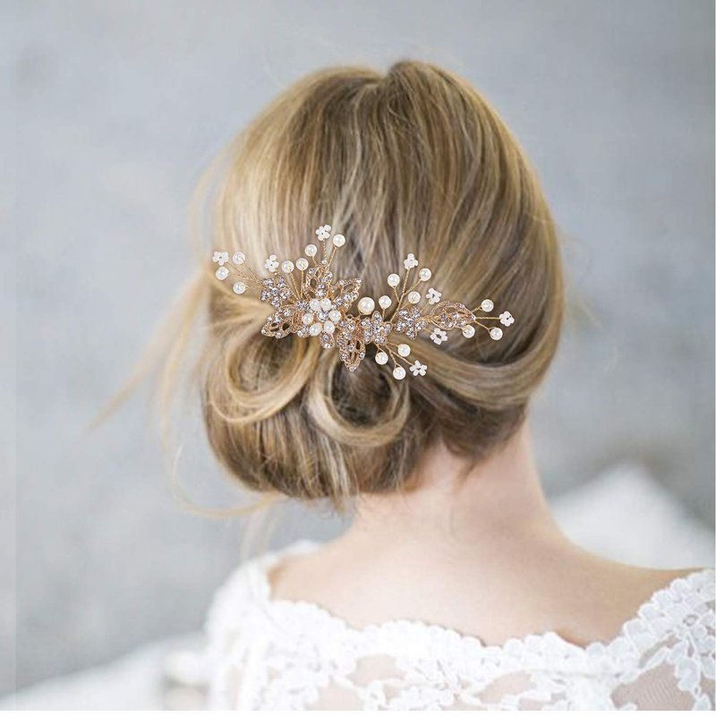 CROWN GUIDE Bridal Hair Comb Clip Pin Rhinestone Pearl Wedding Hair Accessories for Women Brides Bridesmaid Hairpiece Gold