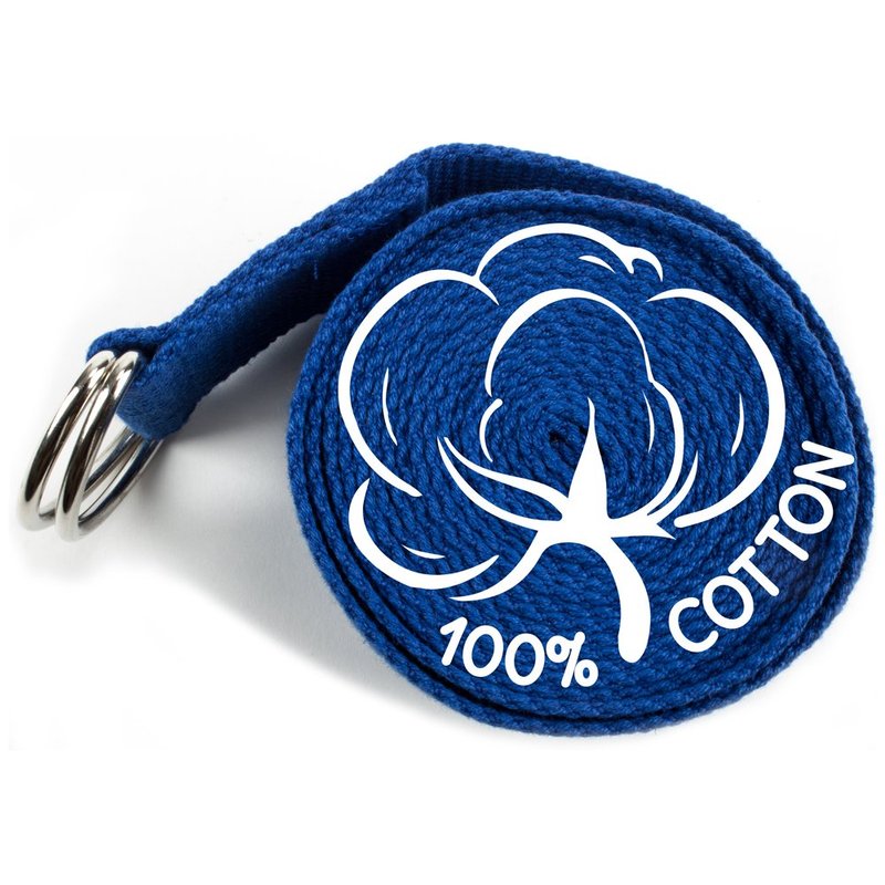 Crown Sporting Goods 10' Extra-Long Cotton Yoga Strap with Metal D-Ring (Blue)