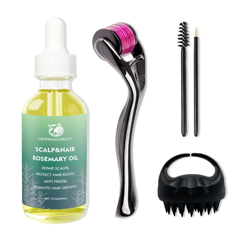 - 5 In 1 Bundle Kit for Hair Growth : This set includes rosemary oil, shampoo brush, eyelash brush, and roller, designed to promote hair and eyelash growth. By using rosemary oil made from natural elements and well-designed tools, it provides you with a comprehensive and effective hair experience.
