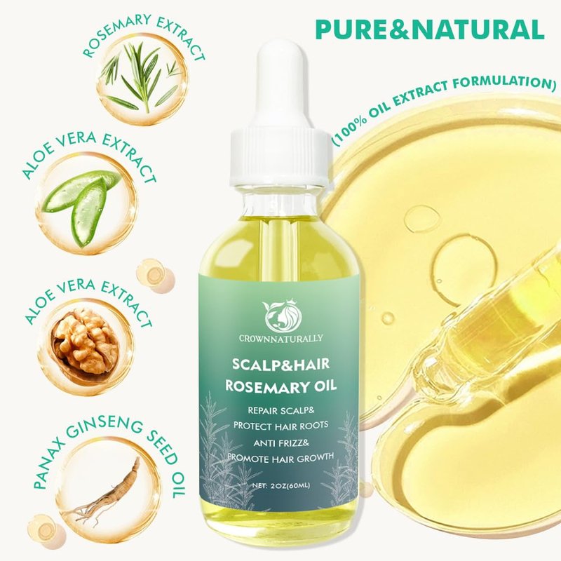 - Natural Properties of Hair Growth Serum : Rosemary oil for hair growth organic is extracted from natural elements without any additives or irritants. 100% oil formula with olive oil, aloe extract, tea tree oil, panax ginseng seed oil etc., which ensuring it is gentle and safe for the scalp and skin.providing a soft and comfortable experience.