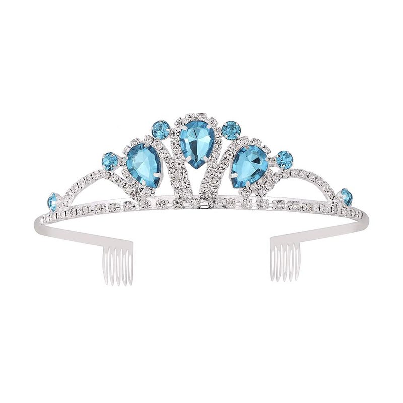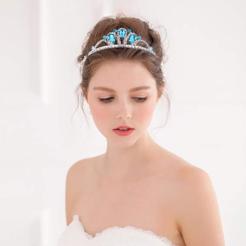 CrownUS Princess Queen Tiara Rhinestone Bridal Wedding Crown, Metal Headband Headpiece, Prom Party Birthday Hair Accessories for Women & Girls (Aqua)
