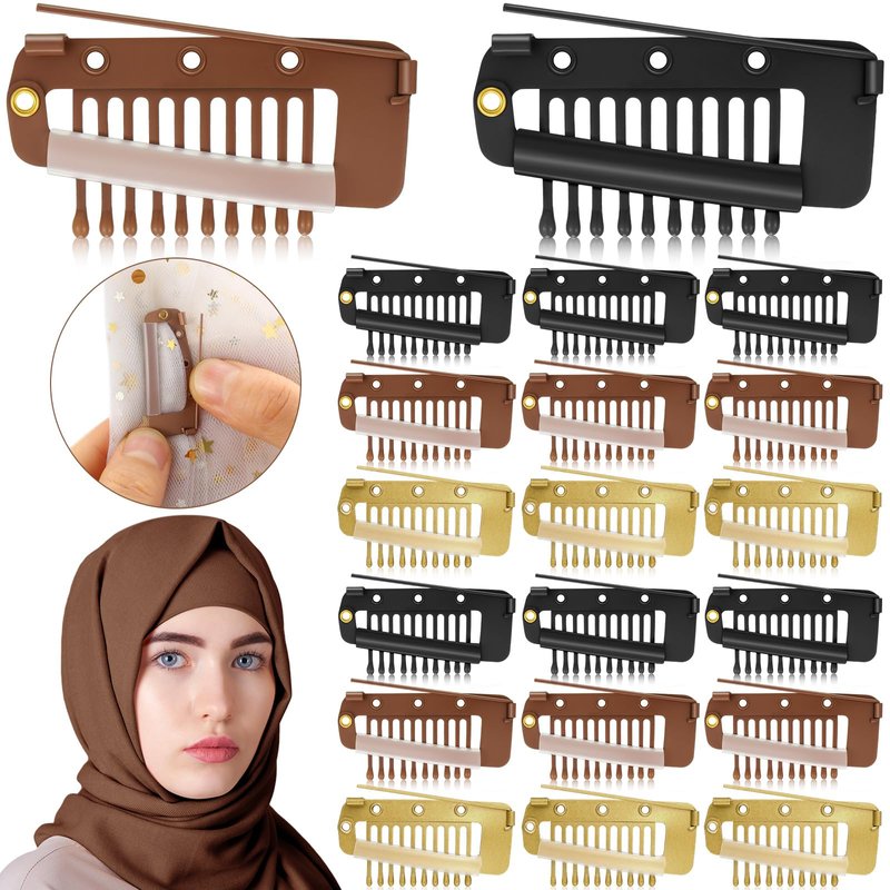 Crowye 20 Pieces Chunni Clips with Safety Pins 10 Teeth Wig Clips Strong Dupatta Grip Clip Flat Dupatta Setting Clips Hair Extension Clips for Woman Hijab Veil Hair Extensions Hairpieces (Multicolor)