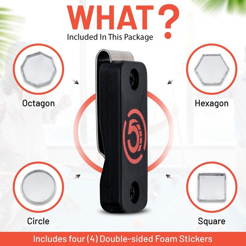 Cru5h Billiards Magnetic Chalk Holder Belt Clip - Rare Earth Neodymium Magnet Belt Clip with Metal Chalk Holders - Circle, Hexagon, Octagon, and Square Included