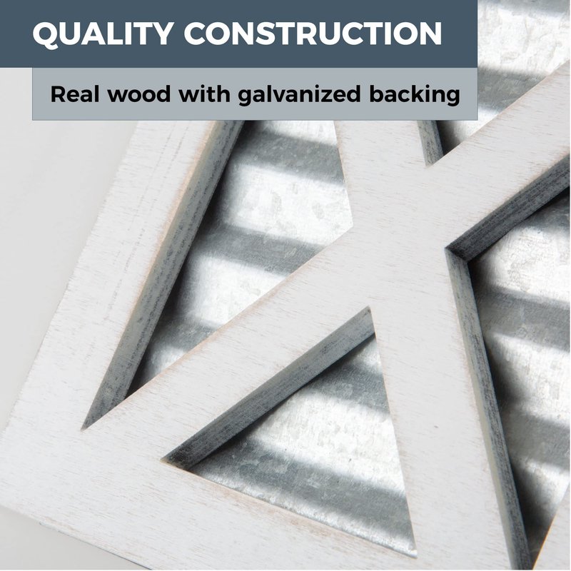 Crutello Wooden X Frame Tissue Box Cover with Galvanized Siding Backing- Rustic Farmhouse White Wood Tissue Holder