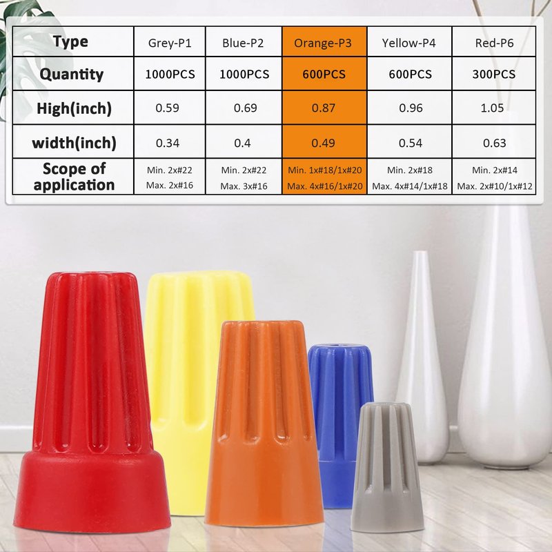 - 🟠Package includes - 600 Pcs Orange wire connectors in total,18-16 AWG (Min. 1#18 w/1#20, Max. 4#16 w/1#20)