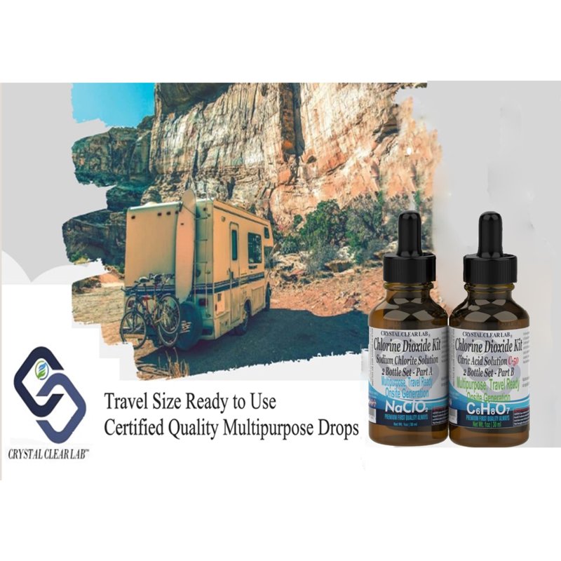 On-Site Generation: Designed for chlorine dioxide generation with a 24-month shelf life. High Capacity: Each container holds 2400 drops (2 x 4 fl oz bottles) for extended use. Quality Packaging: Amber glass bottles with droppers and spray top applicator for ease of use. Complete Kit: Includes 1 x 4 oz Sodium Chlorite solution and 1 x 4 oz Citric Acid for a full purification process. Versatile Use: Easy to use solution drops, perfect for travel, camping, and hiking.