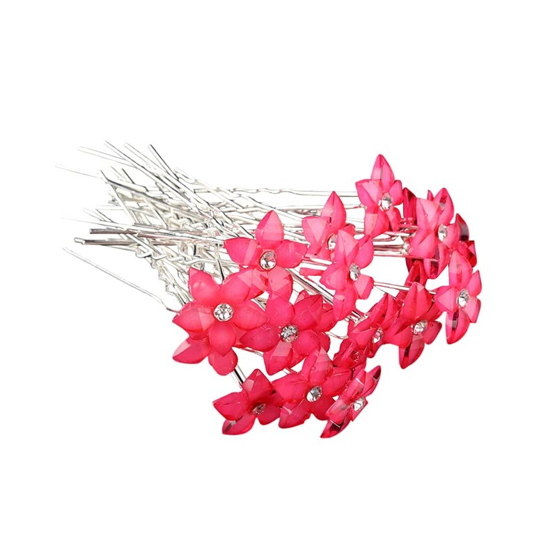 Crystal Rhinestones Flowers UShaped Hairpins for Brides/Bridesmaids/Prom/Sweet Sixteen/Quinceanera/Weddings - Set of 20 (Dark Pink)