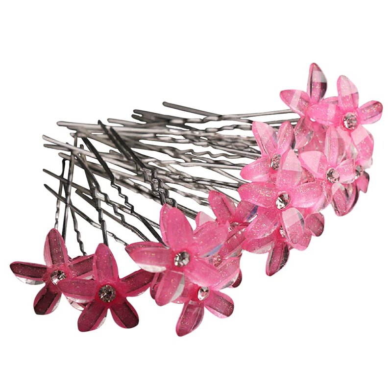 Crystal Rhinestones Flowers UShaped Hairpins for Brides/Bridesmaids/Prom/Sweet Sixteen/Quinceanera/Weddings - Set of 20 (Light Pink)