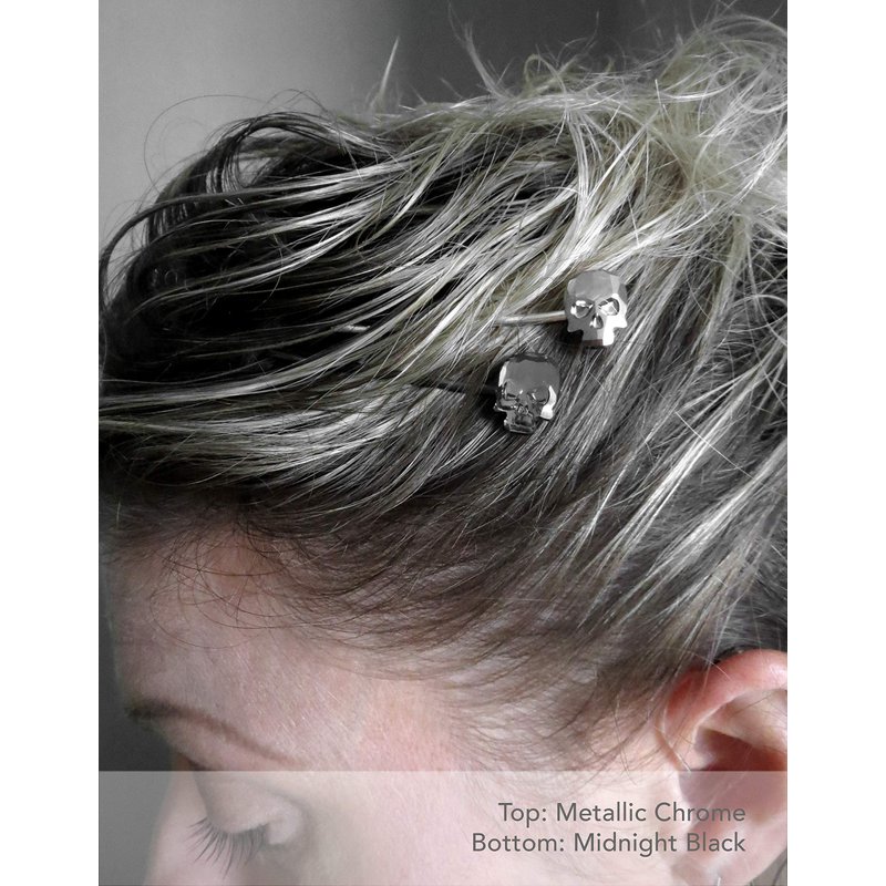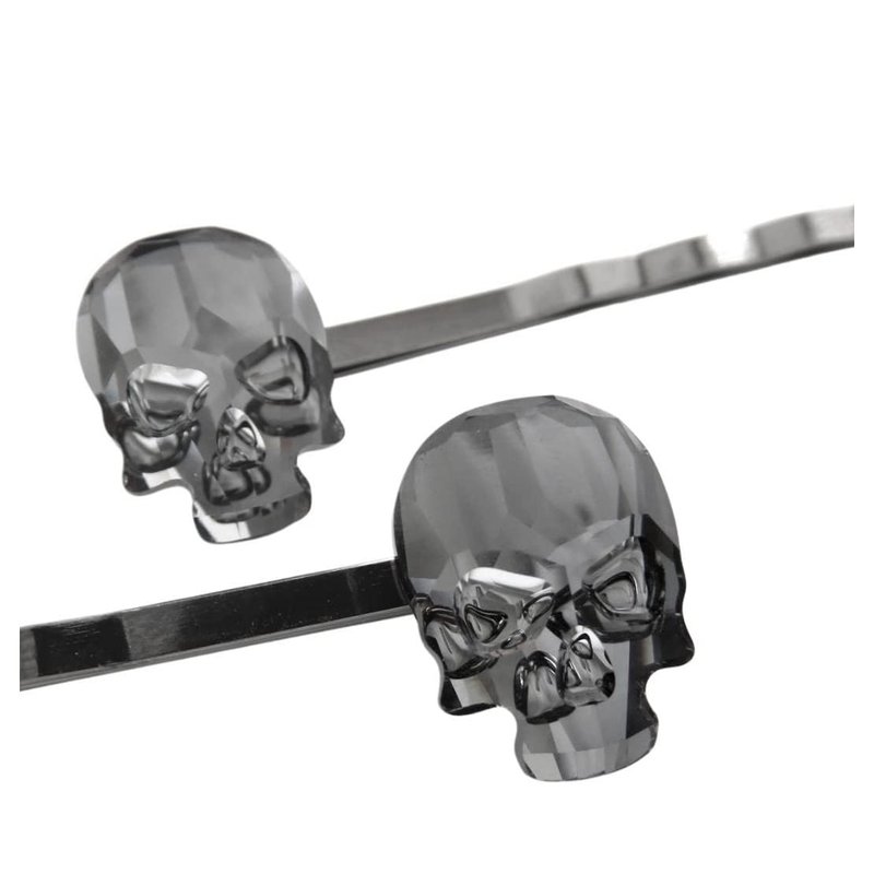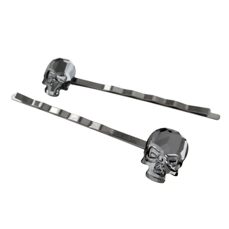 Crystal Skull Bobby Pins in Black Midnight, Set of 2, Gothic Halloween Hair Jewelry