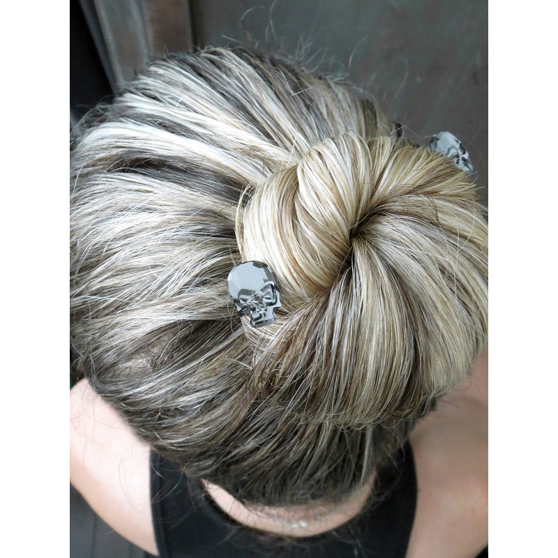 These sparkling crystal skull hair pins add just the right bit of both sweetness and bad-assery to your -'do.