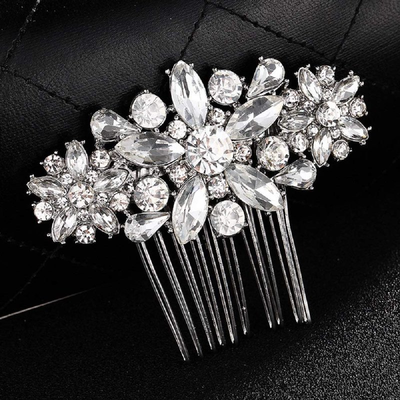 Crystal Wedding Hair Comb Rhinestone Bridal Side Hair Comb Hair Pin Flordal Headpiece Hair Jewelry Silver color Hapibuy