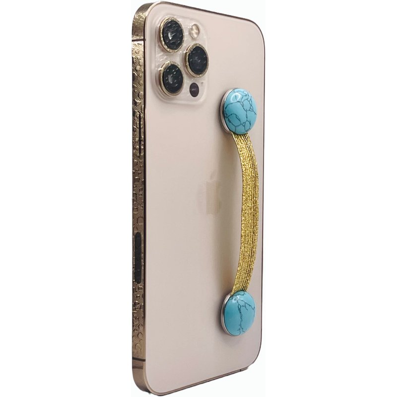 CRYSTALFY: Crystal Phone Grip and Phone Strap with Real Turquoise Genuine Natural Crystals and Gold Elastic Strap for Smartphones and Tablets