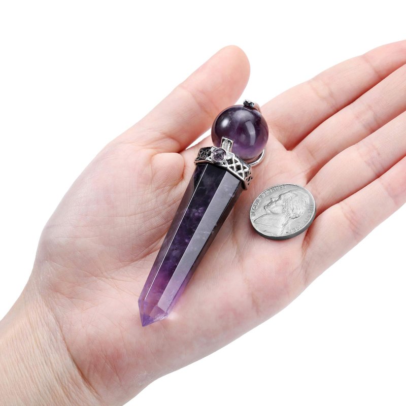 - Specifications: size: 3.19-3.27 inches in length; 0.71 inches in width. Material: natural amethyst crystal. Weight: 35g. Package: 1x amethyst wand, 1x gift box